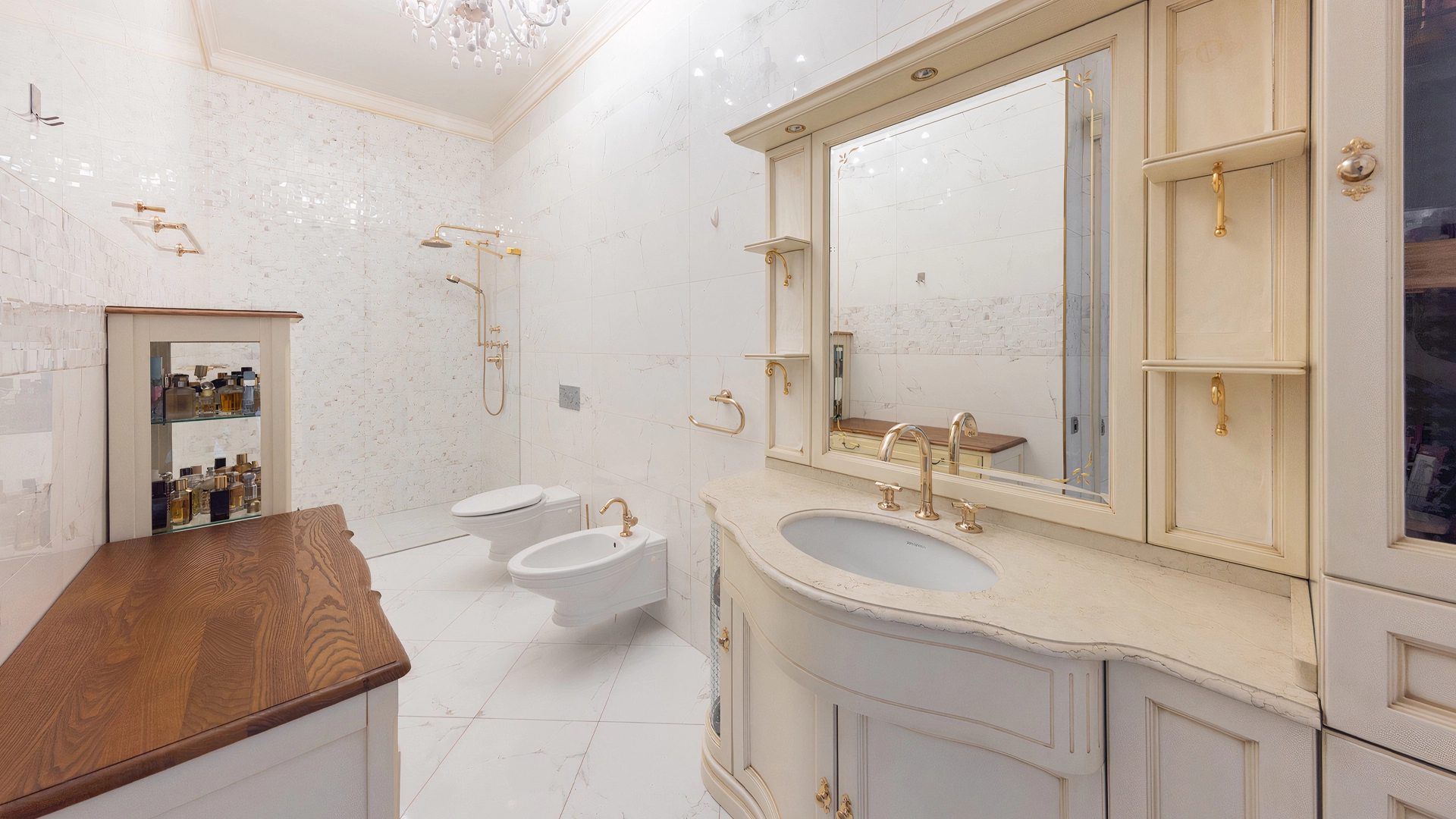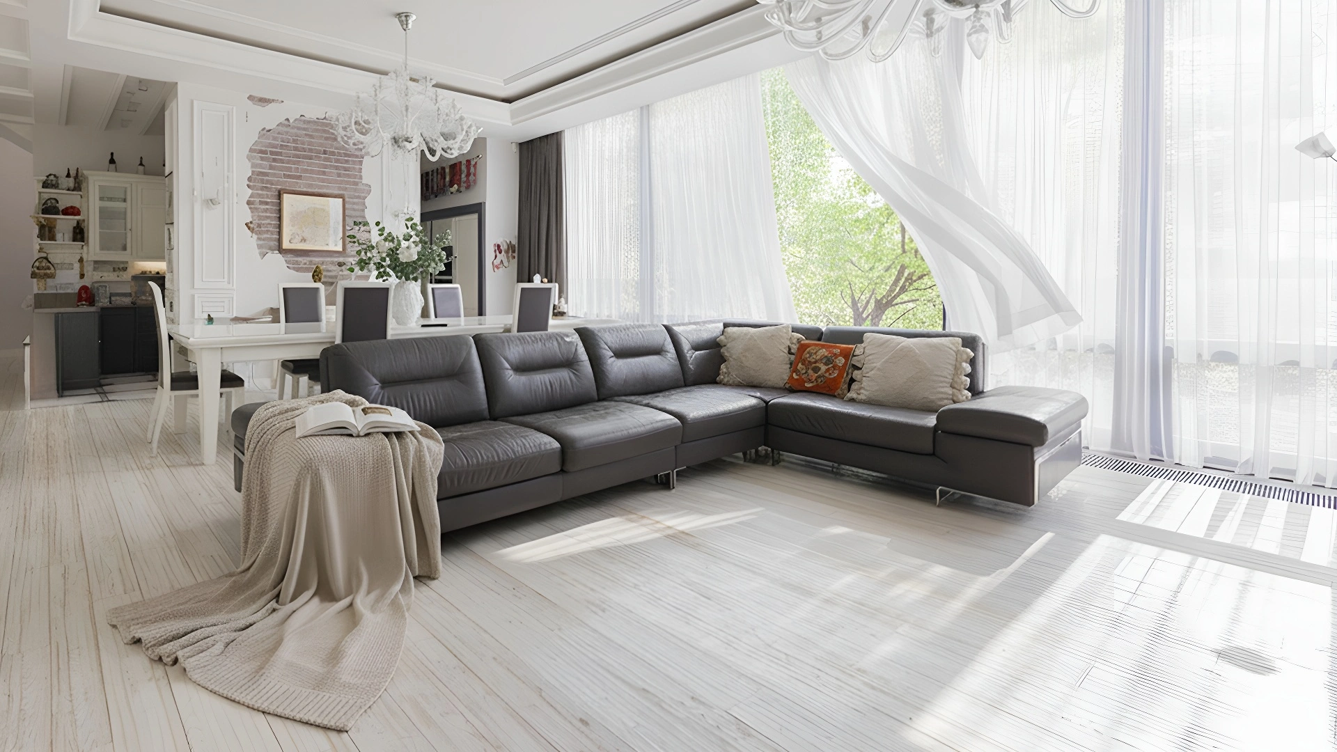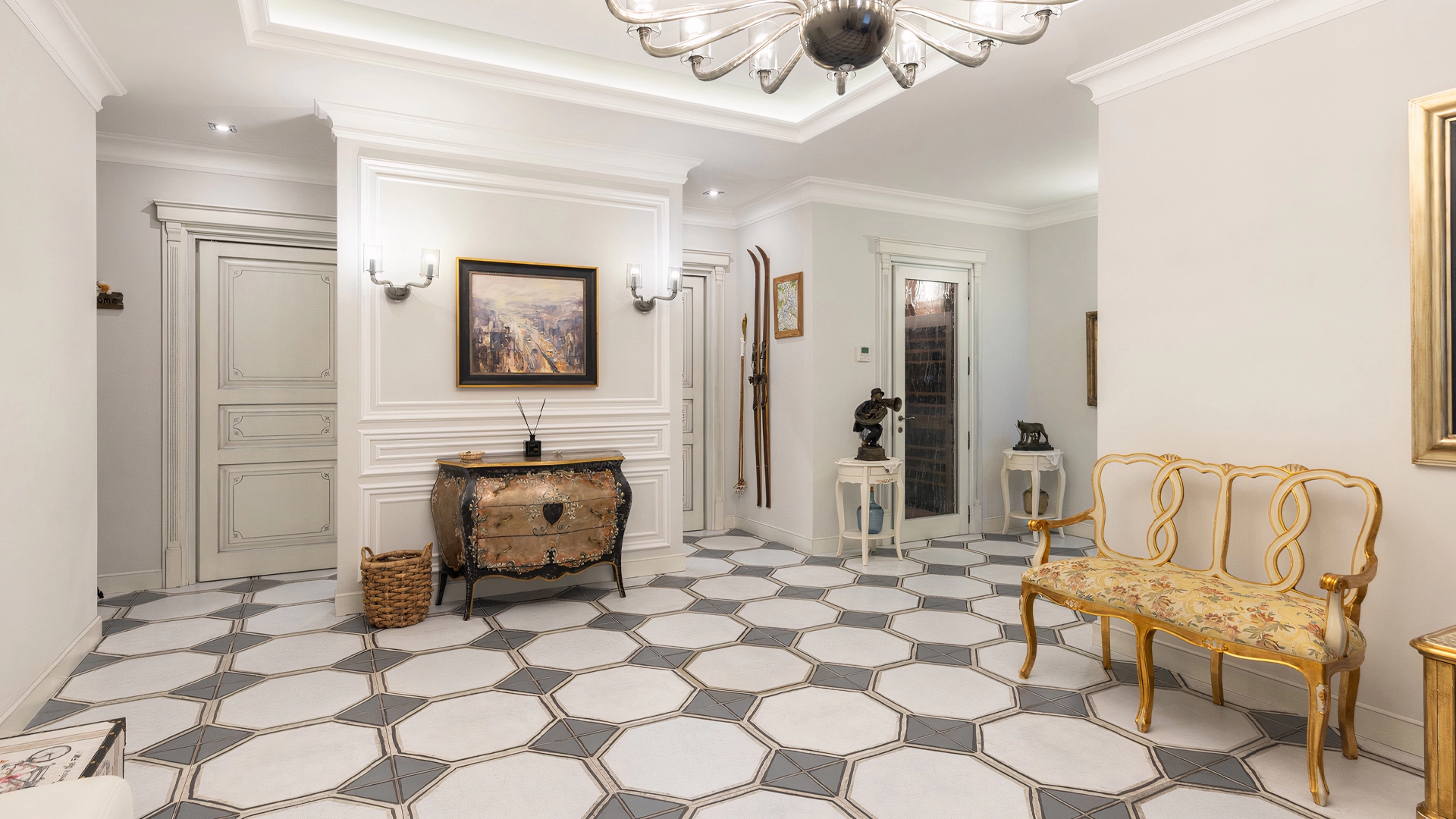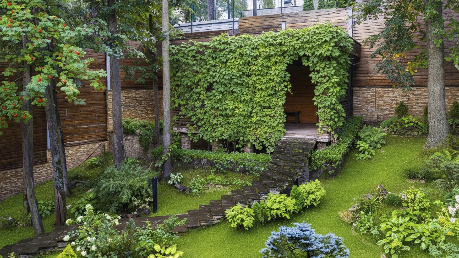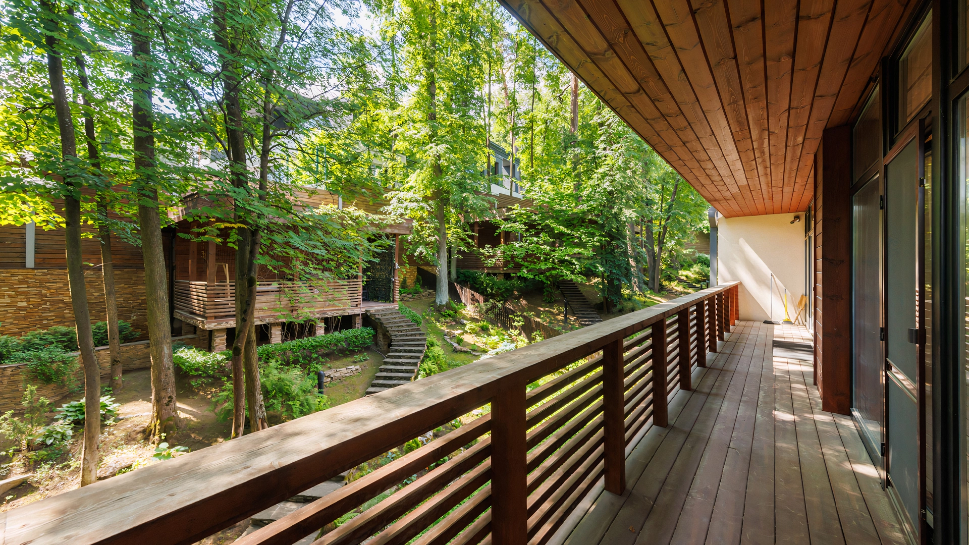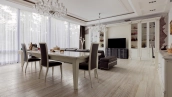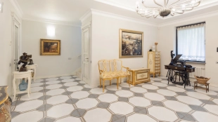 This 430 m² townhouse is located on a 1.5 hectare wooded plot. The facade of the building with panoramic windows is made in a modern style and finished with materials with different textures - plaster, clinker bricks, stone tiles and planks, with backlighting. The interior decoration with elements of classicism uses creamy shades. The layout of the residence includes 4 bedrooms, living room with TV-zone, kitchen-dining room, wine cellar and a garage for 2 cars. The property has been landscaped with elevation differences and street lighting.