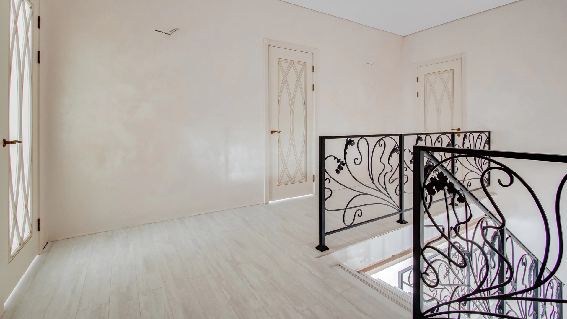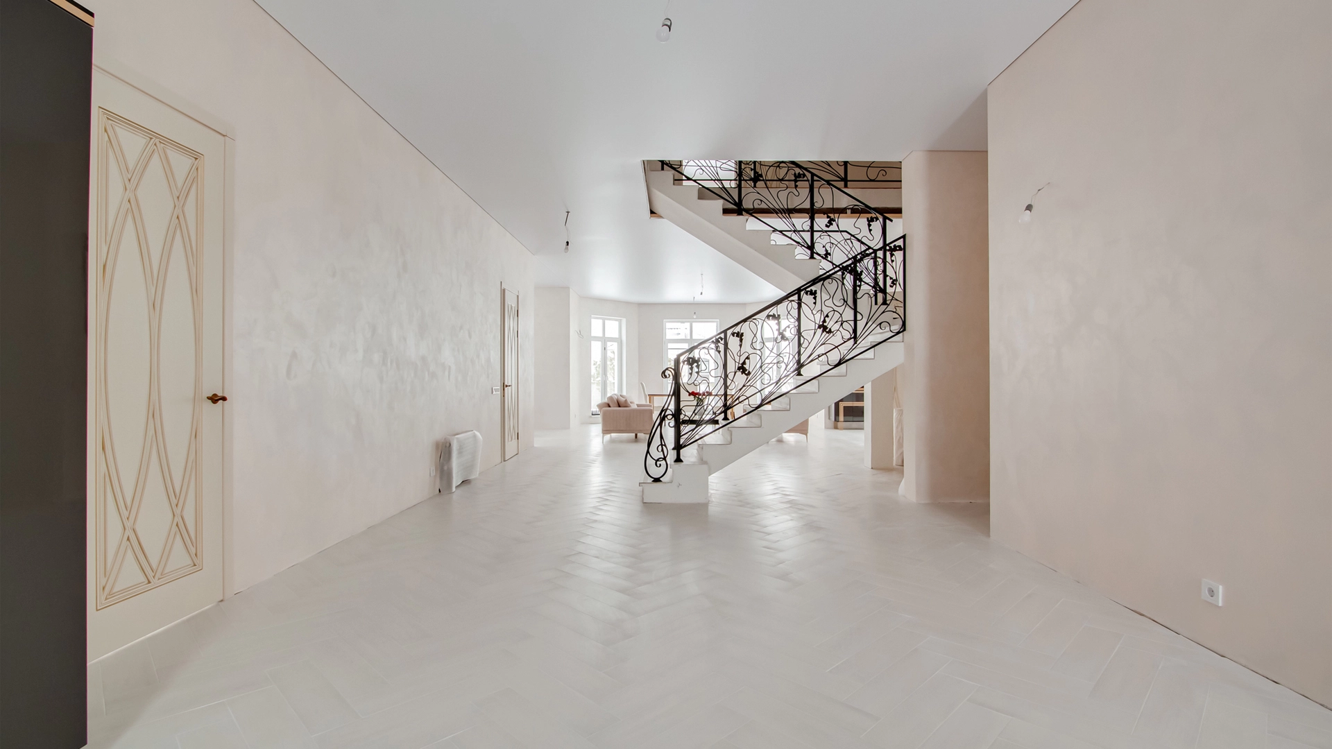 A 436 m² house with turnkey finishing on a field plot of 18 hectares. The bright facade is characterized by large panoramic windows in French style with energy-saving double-glazed windows. Inside planned 5 bedrooms, kitchen-living room, study, 5 bathrooms and exit to the terrace. Ceiling height is 3.3 meters, finishing works are in progress. In the house you can install a sauna and fireplace, to increase the area of the house by organizing the attic. On the plot next to the main house there is an opportunity to build a guest house.