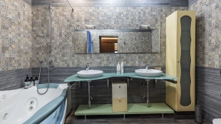 High quality and natural materials are used in the finishing. The interiors are fully equipped with furniture and appliances. Functional layout divides the space into several zones - main, bedroom, guest. For meetings with family or friends designed SPA-zone with a swimming pool, hammam and sauna, movie theater, tea room, billiard room with a bar and spacious terraces with a place for barbecue. For additional comfort, the cottage is equipped with a system "smart home".