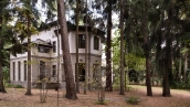 This 700 m² country mansion is built on a 40 hectare wooded plot, where nature becomes a natural frame for the architecture. The building is designed in neoclassical style: the facades are faced with light stone and plaster, the lines are emphasized by graceful bay windows, overhanging roofs, porticos and balconies with wrought iron fences.