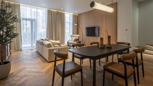 Futuro Park is a townhouse village surrounded by forest. There are 372 townhouses with panoramic glazing and exploitable roofs. The facades of townhouses are faced with Austrian panels "under wood". Inside there is a free layout without internal bearing walls. The plot of each townhouse is already sown with a lawn, planted with thuys and has an auto irrigation system.