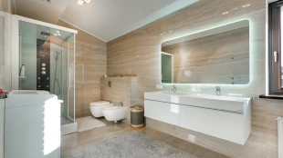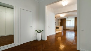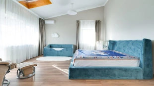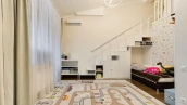 The townhouse of 293 m² is located on a field plot of 5 hectares. The minimalist interior design emphasizes the use of natural materials. The house is equipped with all necessary furniture and appliances. The living room is equipped with a laser projector with a 150 inch screen and an audio system for home theater. Installed security alarm system Gulfstream.