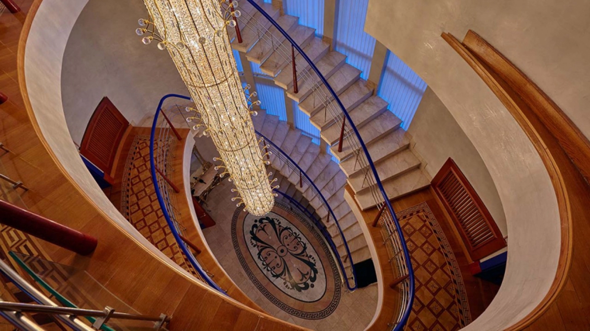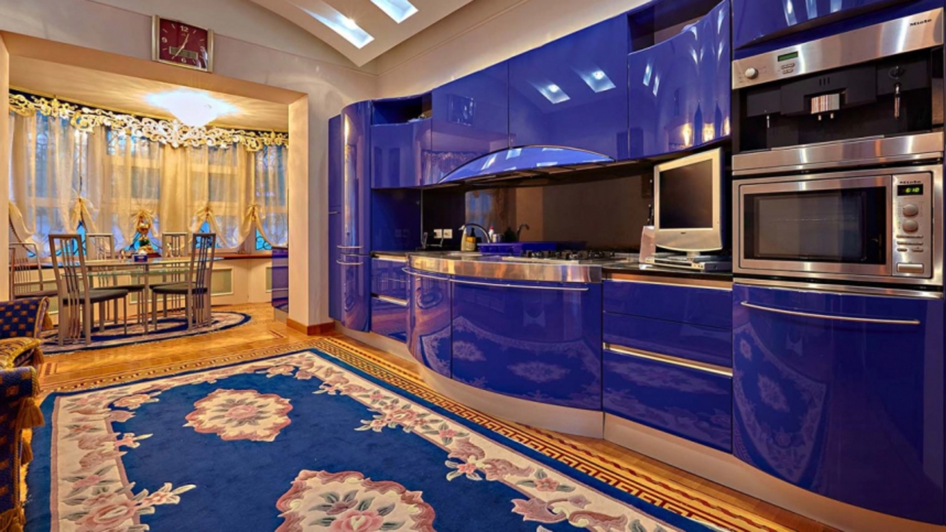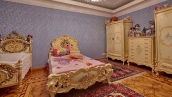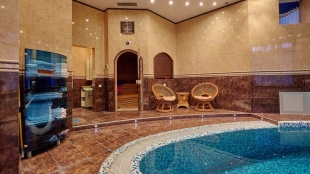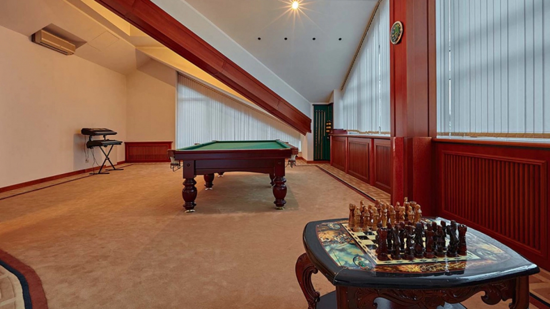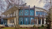 This representative country residence of 800 m² with swimming pool is located on a plot of 14 hectares. The façade is neoclassical in beige and blue colors, from the second floor you can access the spacious terraces. The interior of the house is decorated in blue, red and gold colors. The floor with parquet is decorated with carpets, windows - curtains in baroque style. The front spiral staircase with a cascading chandelier will surprise guests. The house is equipped with a kitchen and bathrooms, the rooms are fully furnished.