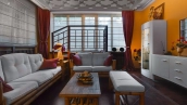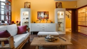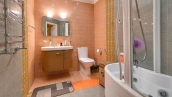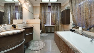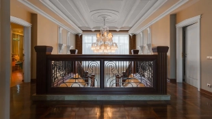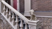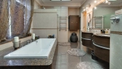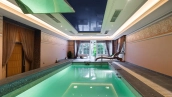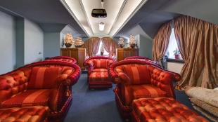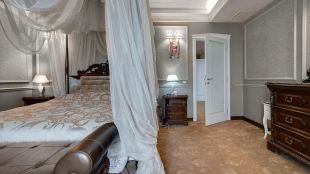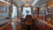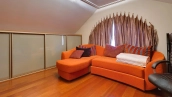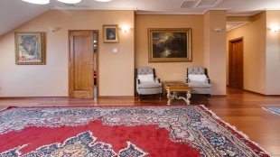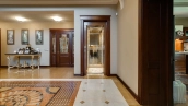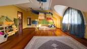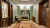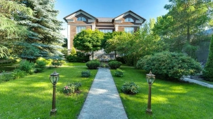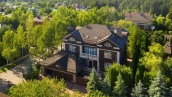 This 1,200 m² country residence with a garage for 3 cars is located on a plot of 23 hectares in the central part of the village. The facade of the building is clad in dark clinker and complemented by white cornices and balustrade. Windows with white frames and fine glazing give the house the look of a classic English mansion. The interior is kept in muted colors, natural stone, rare woods, textiles and rare furniture. In the living room there is a fireplace made of natural stone. The house has 4 bedrooms with bathrooms and dressing rooms, a movie theater and a swimming pool.