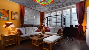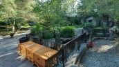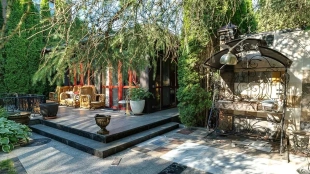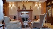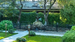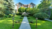 The plot was landscaped with lawn, ornamental trees, fountain and sculpture groups, and built a glazed tea house overlooking the pond. Garage for 3 cars with a staff apartment is located in front of the house, with direct access to the street.