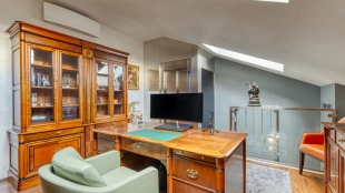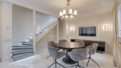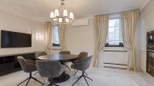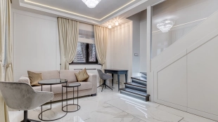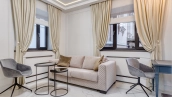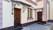 A three-story mansion with a basement in Romanov Lane in the Arbat district. The historical mansion was built in 1899. The building was completely reconstructed in 2015 with the replacement of the floor slabs with reinforced concrete ones. The facade is finished with beige-colored plaster, decorated with rustics, cornices and window brackets of purple shade. The mansion is divided into 2 townhouses with finishing and furniture, each with its own separate entrance. The 76 m² townhouse has a wine cellar, a living room with bathroom, a kitchen-dining room and on the top floor a bedroom with bathroom. The 81 m² townhouse has a laundry room with closet, a kitchen-dining room, a bedroom with bathroom and a study and an elevator for convenience. There are 2 parking places at the entrance and the entrance is through a barrier. The property is suitable for living or residence.