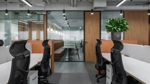 A 532 m² office in Tverskoy district. The object is located on the 11th floor of the business center "On Gazetnoy". The room with a combined layout is finished and equipped with 83 workplaces. Central communications are connected, supply and exhaust ventilation and a two-pipe fan-coil system are installed.