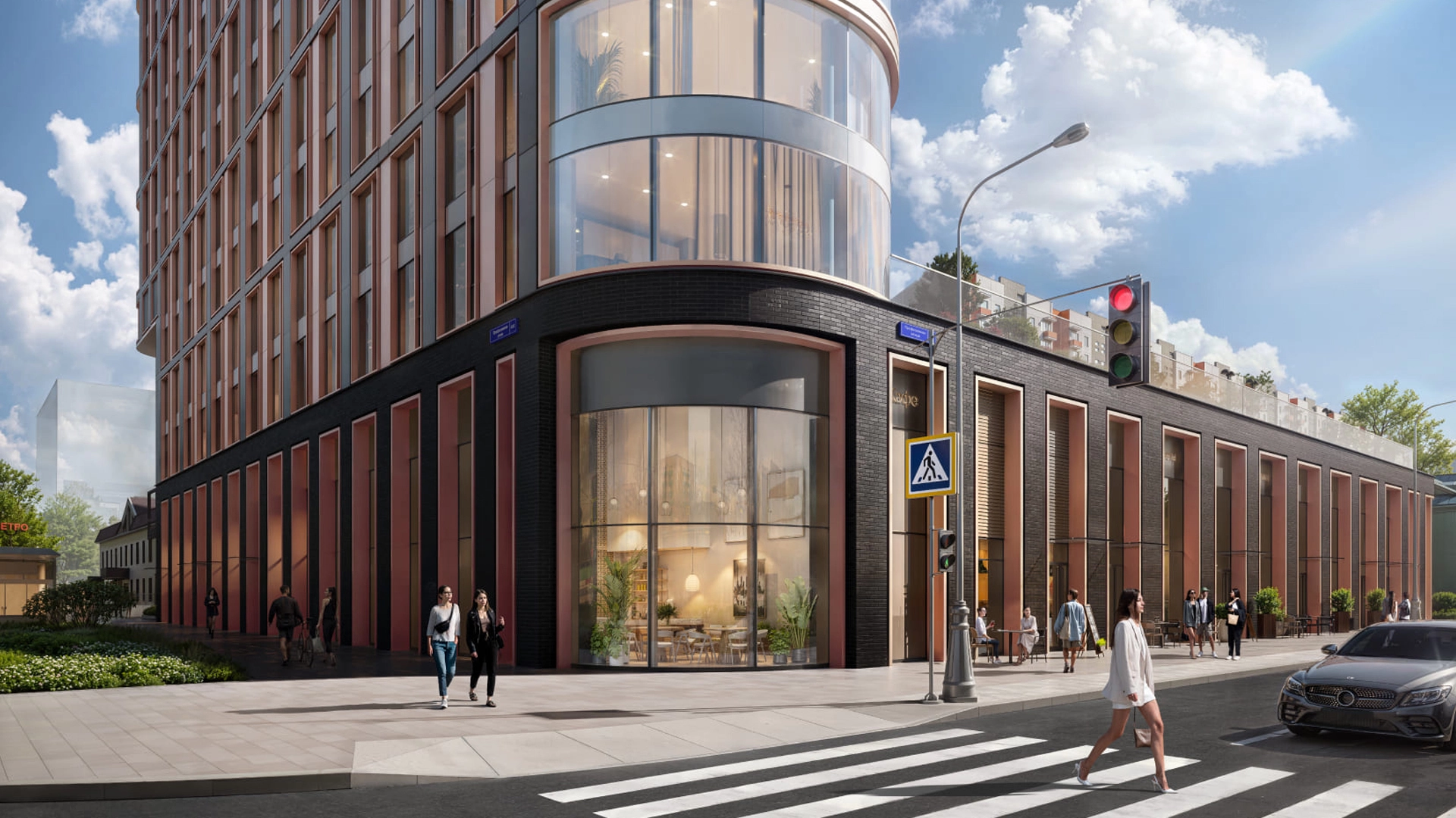 The 110 m² open-plan retail space is located on the first floor of Level Akademicheskaya business class residential complex. The premise is equipped with an extractor hood. Separate entrance from the street and from the lobby, window glazing. There is an unloading zone, a place for advertising on the facade. Underground parking is planned in the complex, there is a paid city parking lot by the road.
