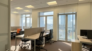 The 488 m² office is located on the eleventh floor of Building D of the multifunctional center Poklonka Place. The room with a combined layout is finished. Supply and exhaust ventilation and central air conditioning systems are installed. Entrance is through the common lobby in the building by pass.