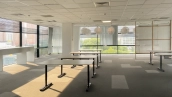 Office of 1 504 sq.m. in Khimki. The open-plan office is located on the 5th floor in building No.1 of the business center "Khimki Business Park". It is finished, ceiling height varies from 2.5 to 3 meters. There is a server room, a kitchen and a separate bathroom. Individual microclimate adjustment by zones is possible. The security is ensured by round-the-clock security with video surveillance and access control.