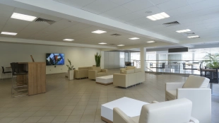 The object with a mezzanine and an open floor plan with an area of 8 006 m². Finishing behind the exit of the car dealership. On the 1st floor there are 2 showrooms, repair area, car wash, storage rooms, on the 2nd floor there is a drive-in for cars, showroom, repair area, storage and office premises. There are separate entrances from the street and from the yard, window glazing and unloading area. The territory has its own parking lot.