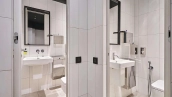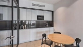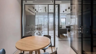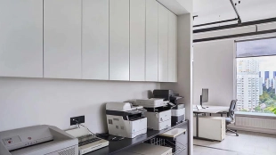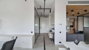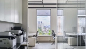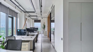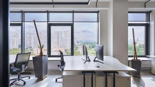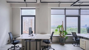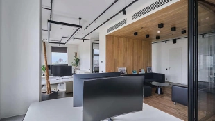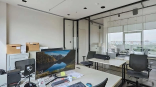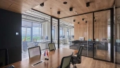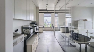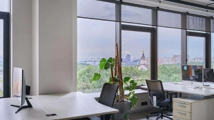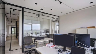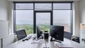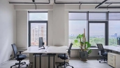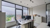 A 200 m² office in North-West district. The object with a combined layout is located on the 9th floor of the multifunctional center YES. The premise is finished, designer repair is carried out. Supply and exhaust ventilation and central air-conditioning systems are installed. Entrance is through the common lobby in the building by pass.