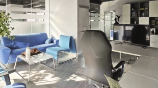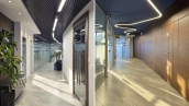 The representative area of 298 m² is designed for 11 workplaces and includes 2 top management offices with reception, 4 offices for management, a meeting room for 8 people, dressing room, kitchen and bathrooms. The working area of 1 024 m² consists of 27 rooms for 124 workplaces and includes 3 open spaces, offices, meeting room, kitchen, 2 bathrooms with shower.