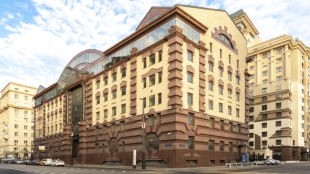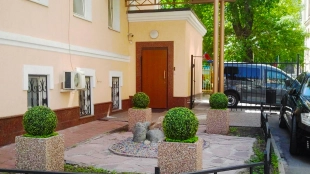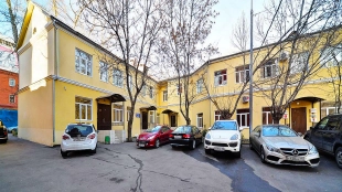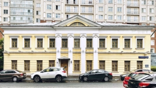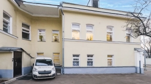 A three-story mansion in Kolobovsky Lane in Tverskoy District. The building built in 1917 after reconstruction in 2014 meets the standards of a class B business center.
