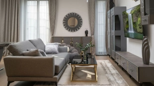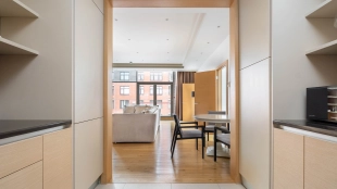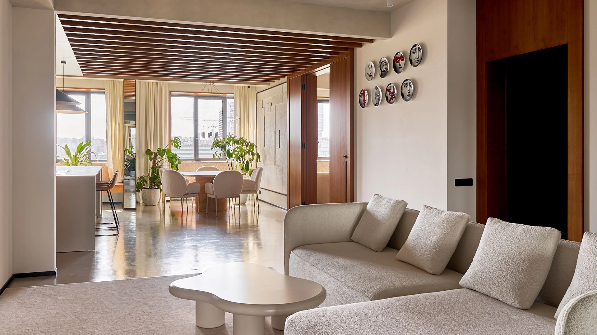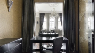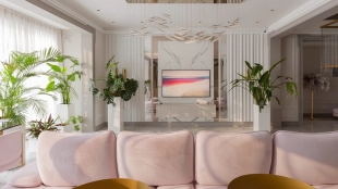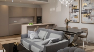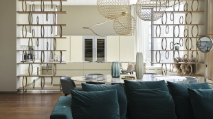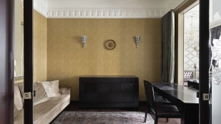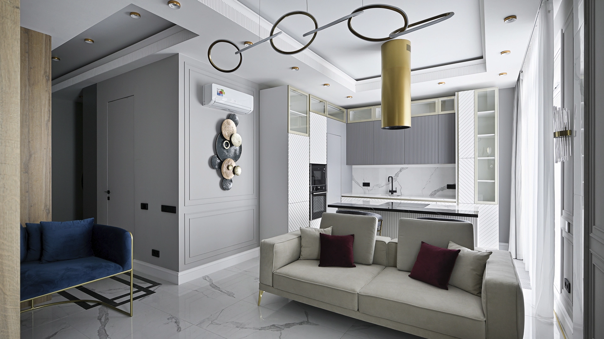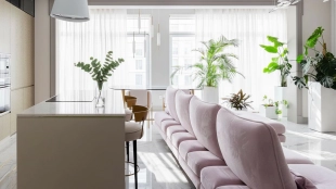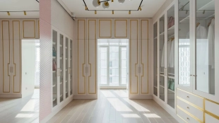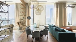 Neoclassical style apartment with high ceilings and panoramic windows