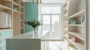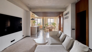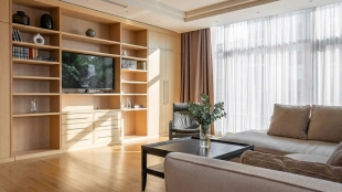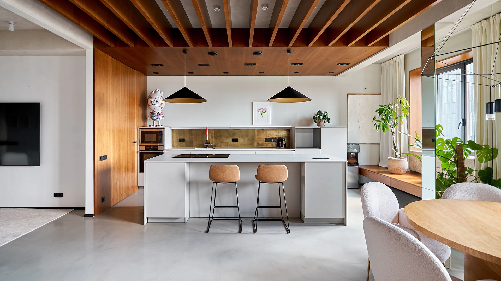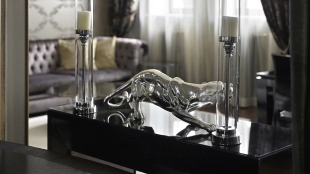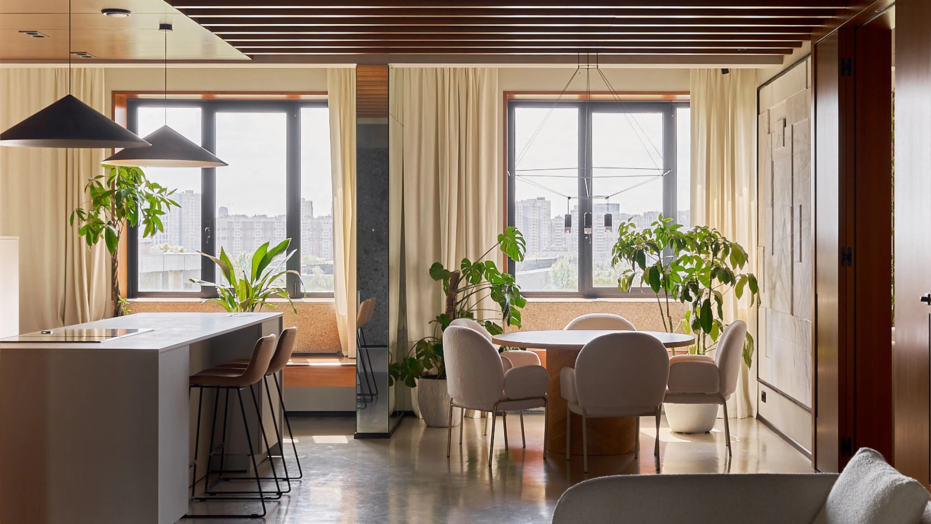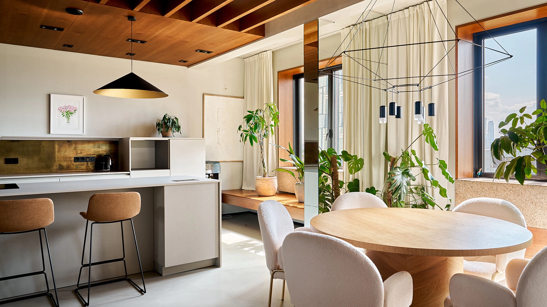 Neoclassical style apartment with high ceilings and panoramic windows