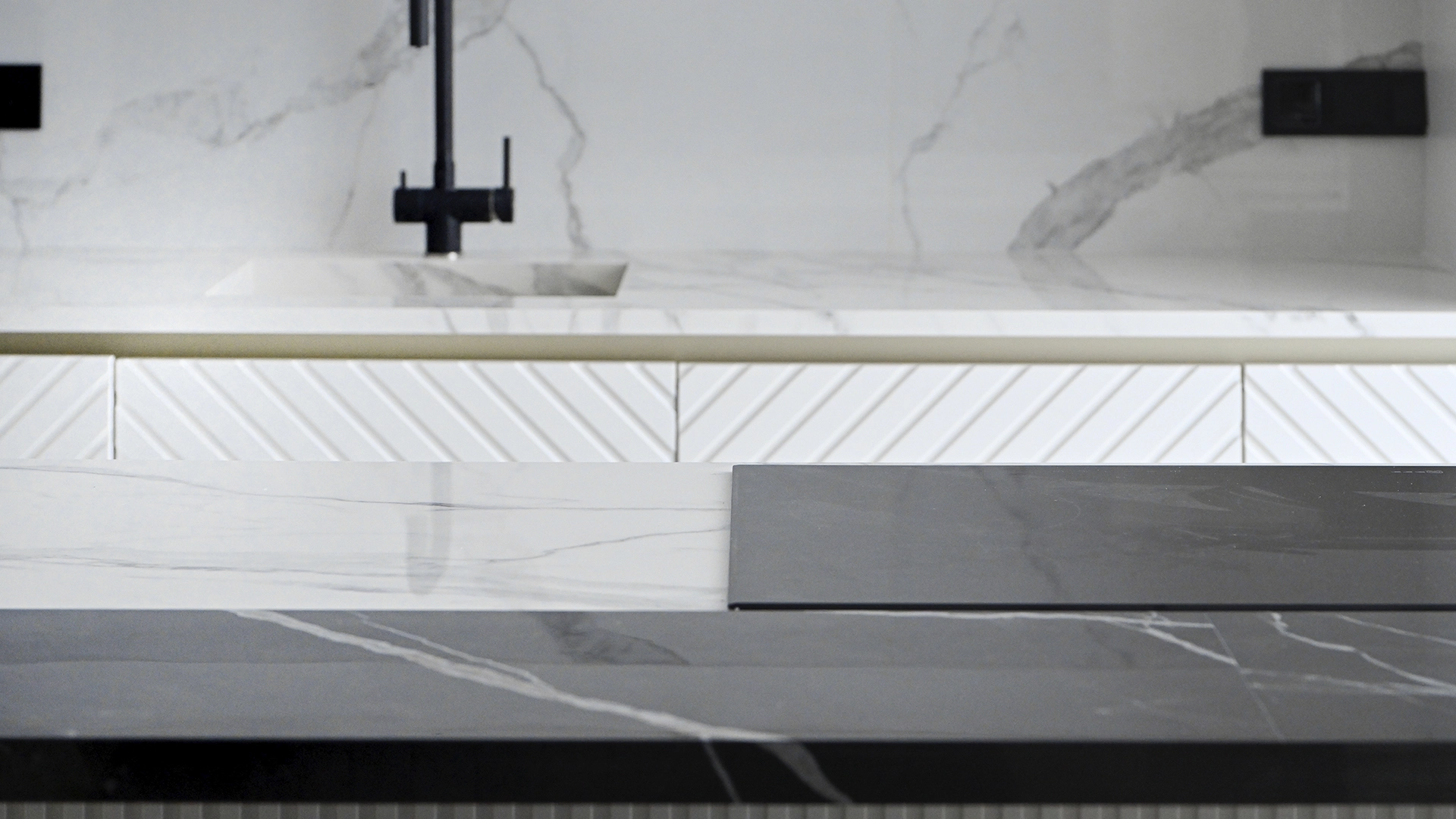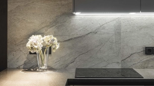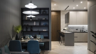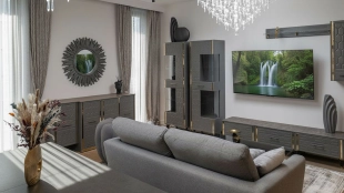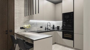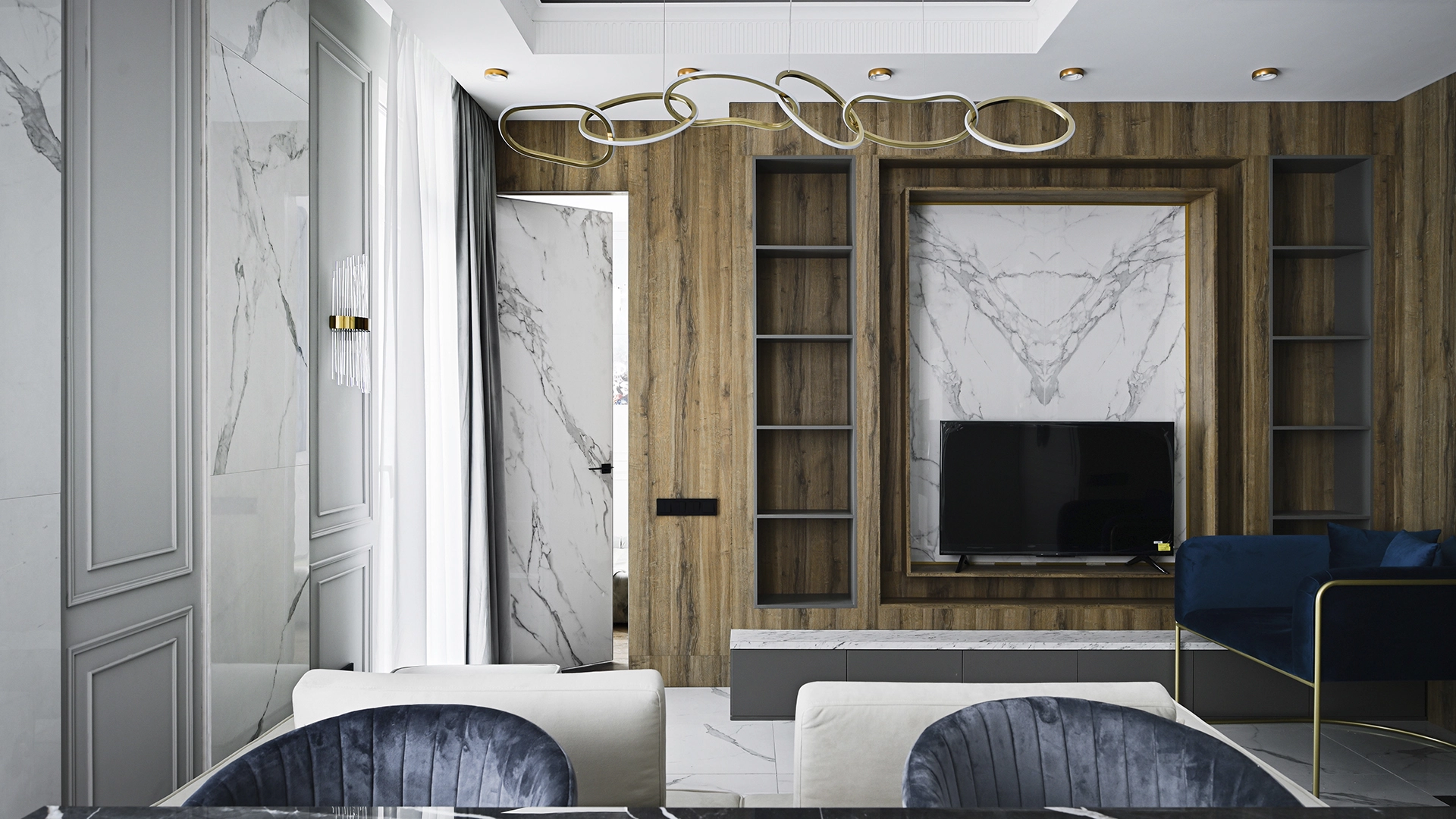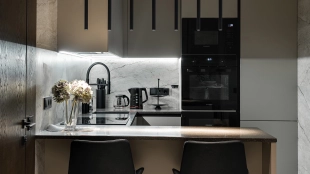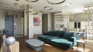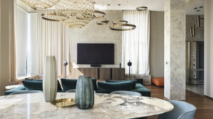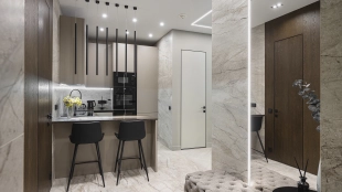 Apartment with designer finishing of natural marble and wood