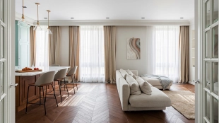 Cozy apartment with designer finishing in classic style