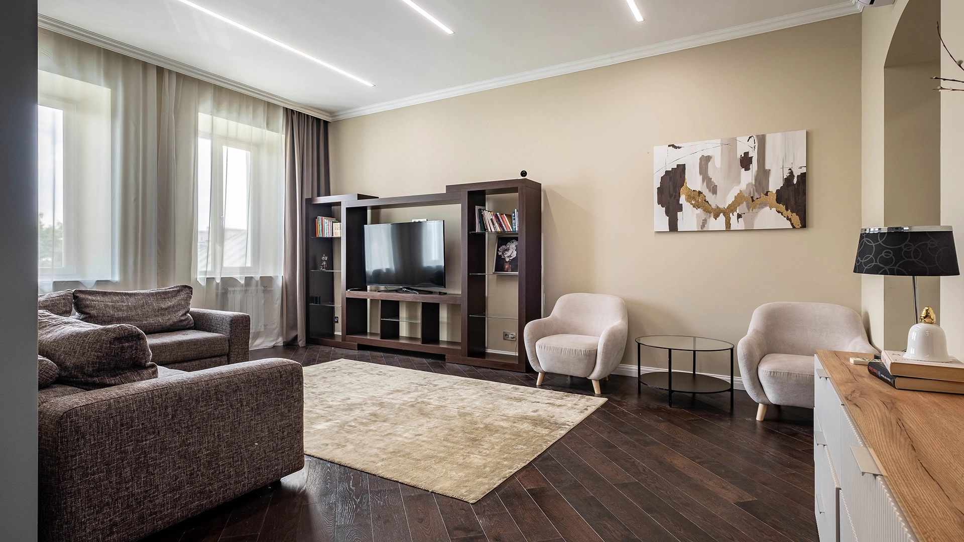Apartments with fusion style interior in "Moscow City"