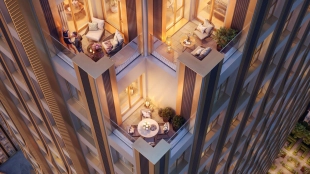Клубный дом делюкс-класса в виде волны на первой линии Дербеневской набережной. До Кремля – 20 минут на машине. В комплексе 188 видовых квартир с террасами и балконами на 3 стороны света. На территории разобьют ландшафтный парк, а лобби наполнят этническими арт-объектами.