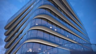 Один дом и 3 разных фасада со своим характером и художественным образом. Белый глянцевый с консольными террасами до 4 метров, из натурального камня с волнообразной пластикой балконов и стеклянный с полуколоннами изумрудно-малахитового оттенка.