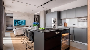 Апартаменты полностью укомплектованы премиальной мебелью. Установлена немецкая кухня Bulthaup. Бытовая техника Gaggenau — духовой шкаф, су-вид, вытяжка, вакууматор, гриль. Холодильник Liebherr, винный шкаф V-Zug. В санузле гидромассажная ванна и унитаз Toto.