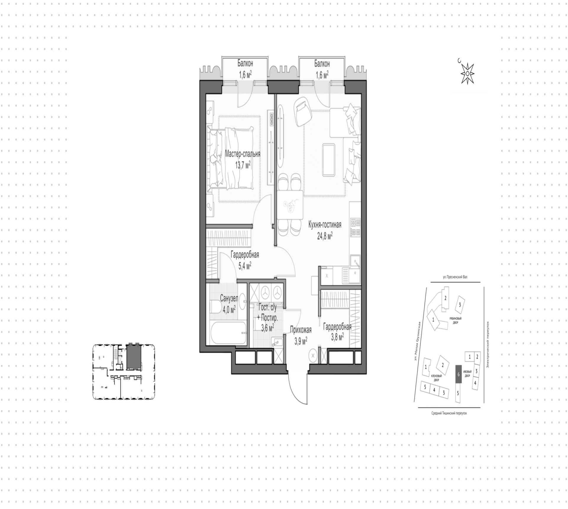 Квартира c 1 спальней, 63 м² в ЖК «Тишинский бульвар», 13 этаж