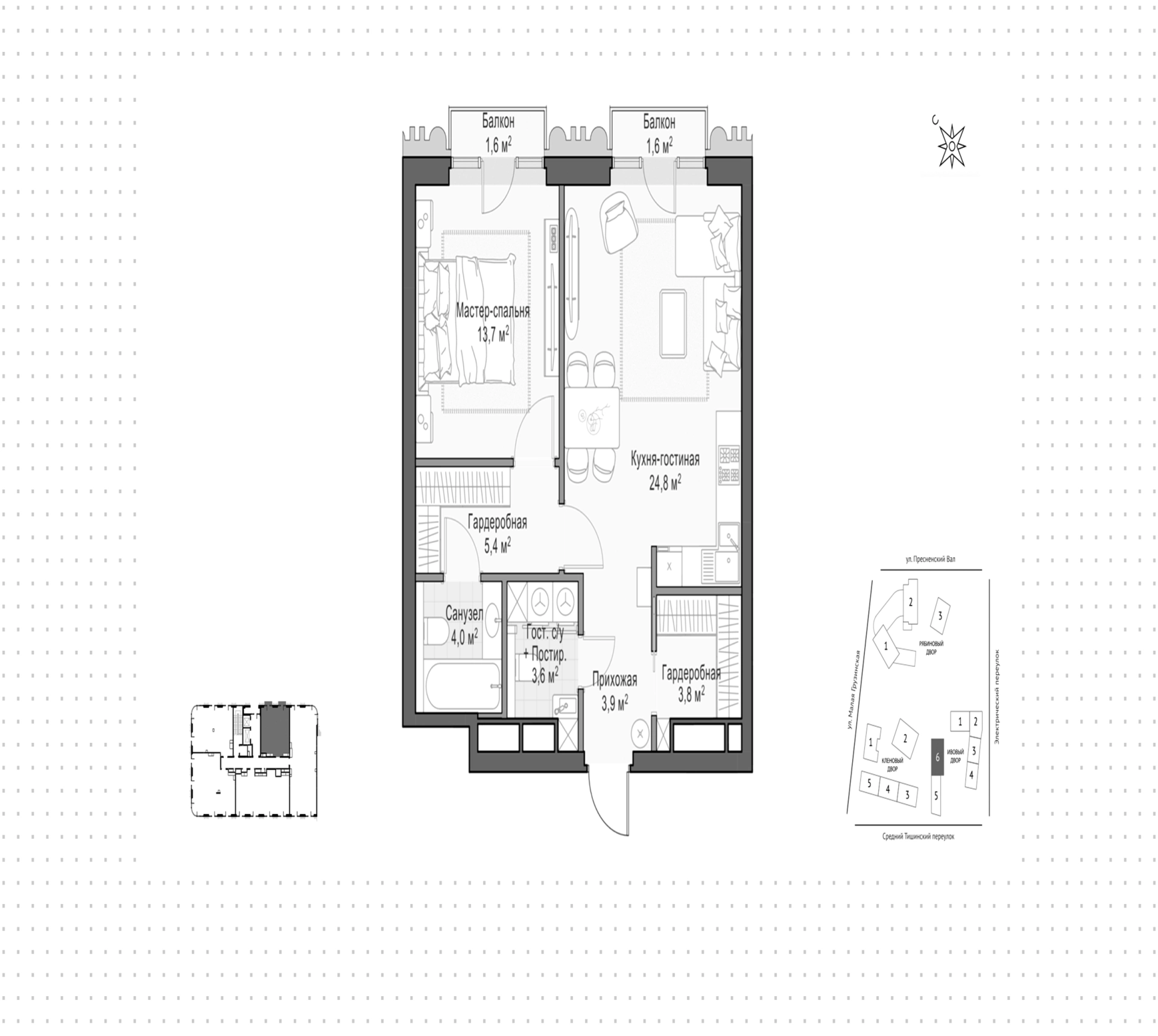 Комплекс расположен в историческом центре Москвы, рядом с Пресней, что обеспечивает доступ ко всем основным объектам инфраструктуры и культурным центрам города.