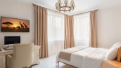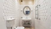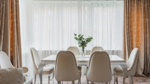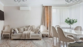 Квартира с 3-мя спальнями общей площадью 170 м² в комплексе премиум-класса «Смоленская Застава» на 5-м этаже. Выполнена авторская отделка в классическом стиле с использованием натуральных материалов. Многоуровневые потолки украшают дизайнерские люстры и венчающий карниз, стены — декоративные молдинги и графика.