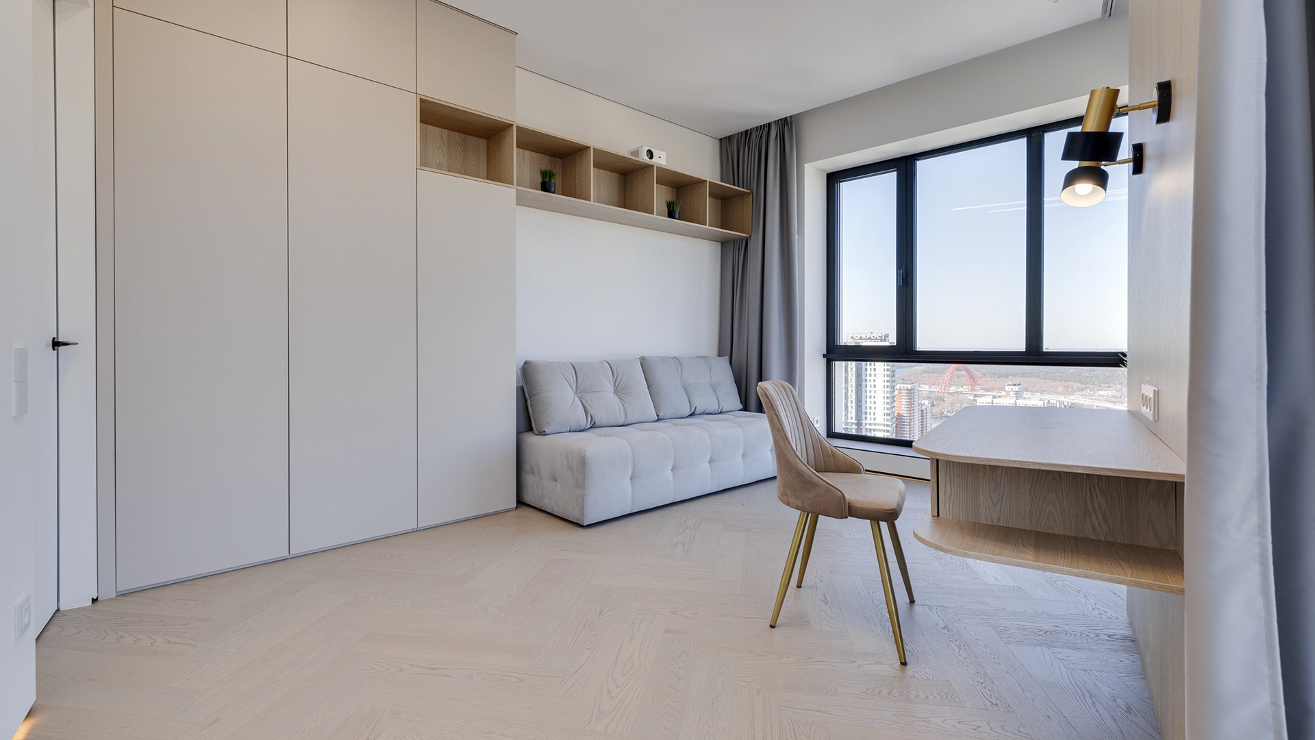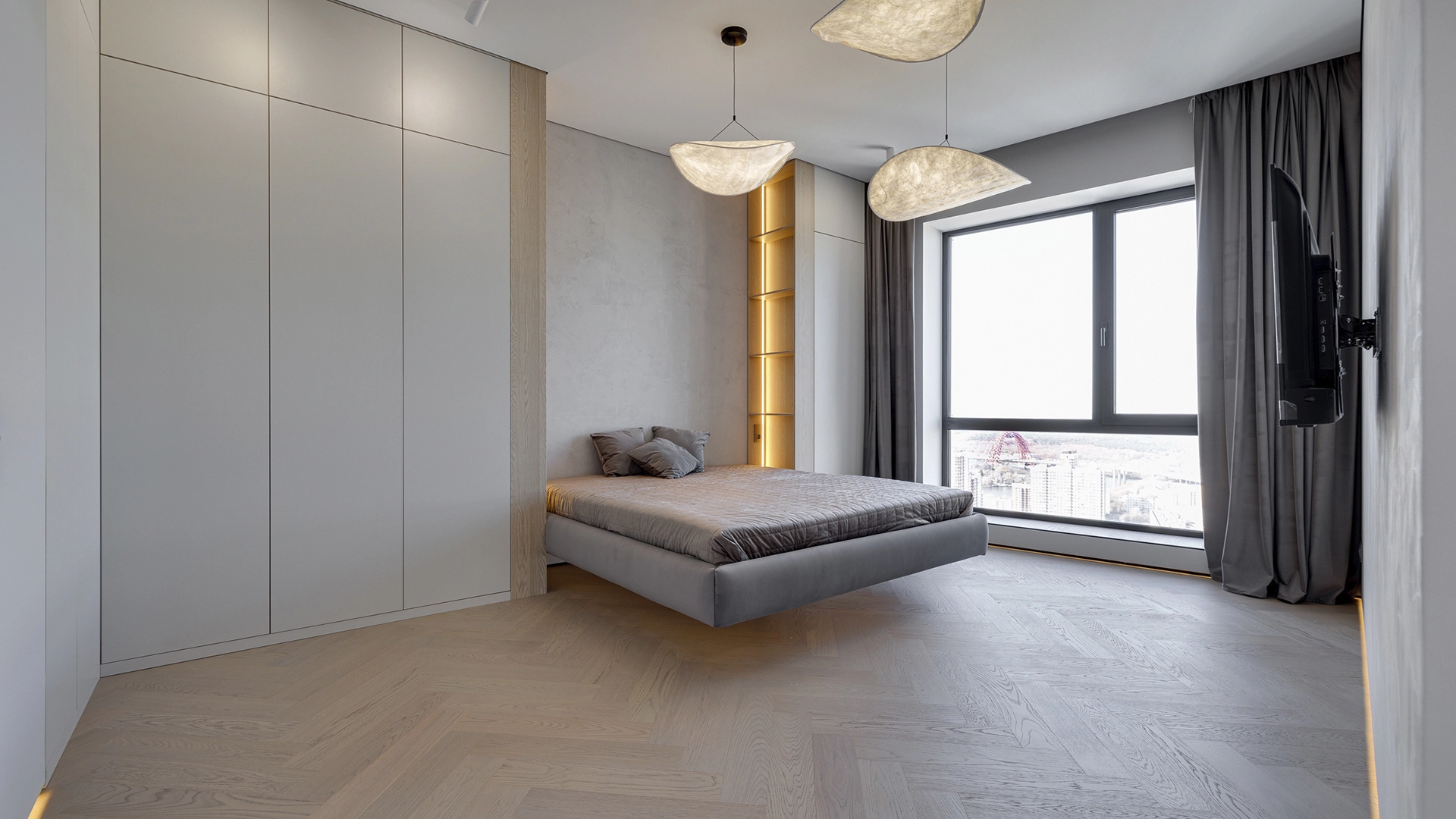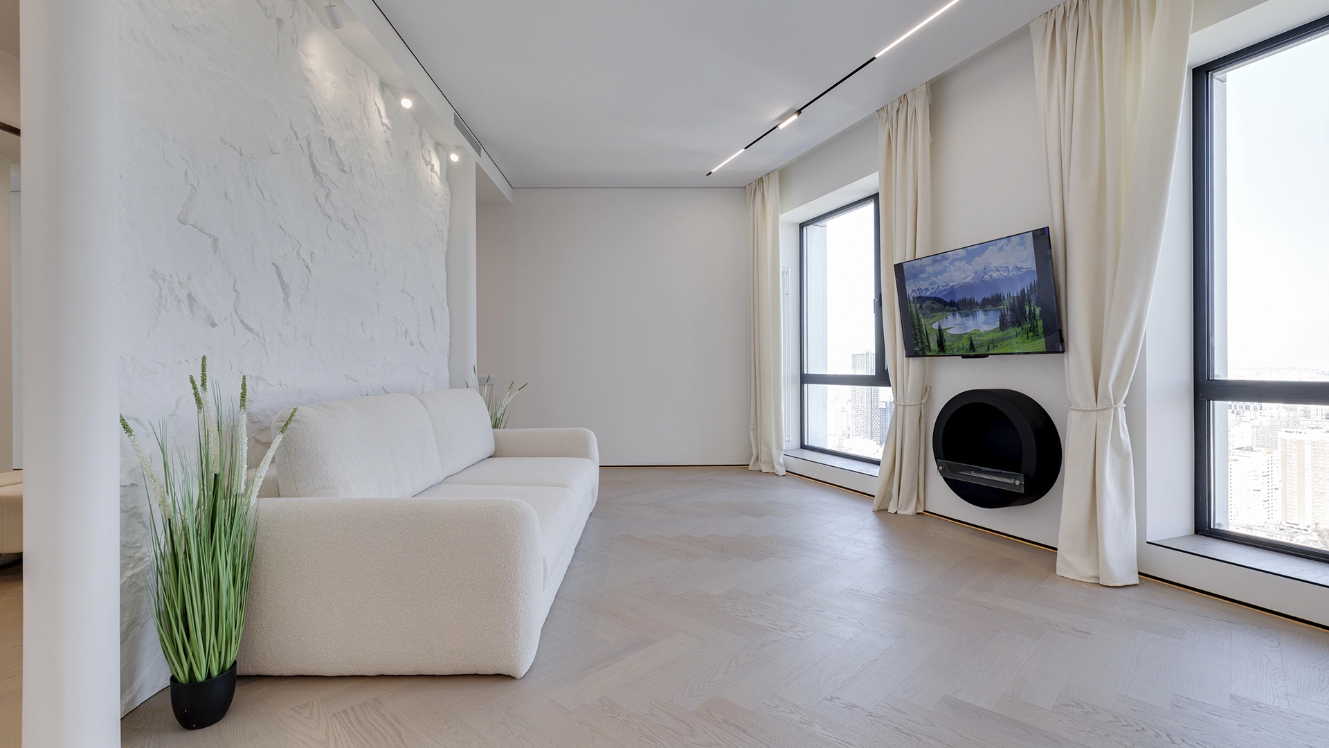 Видовая квартира с 2-мя спальнями в комплексе бизнес-класса Wellton Towers. Квартира площадью 98 м² расположена на 41 этаже. Выполнена дизайнерская отделка в современном стиле с использованием премиальных материалов. Произведены работы по комплексной шумоизоляции, установлены системы «умный дом», «теплый пол» и скрытого кондиционирования.