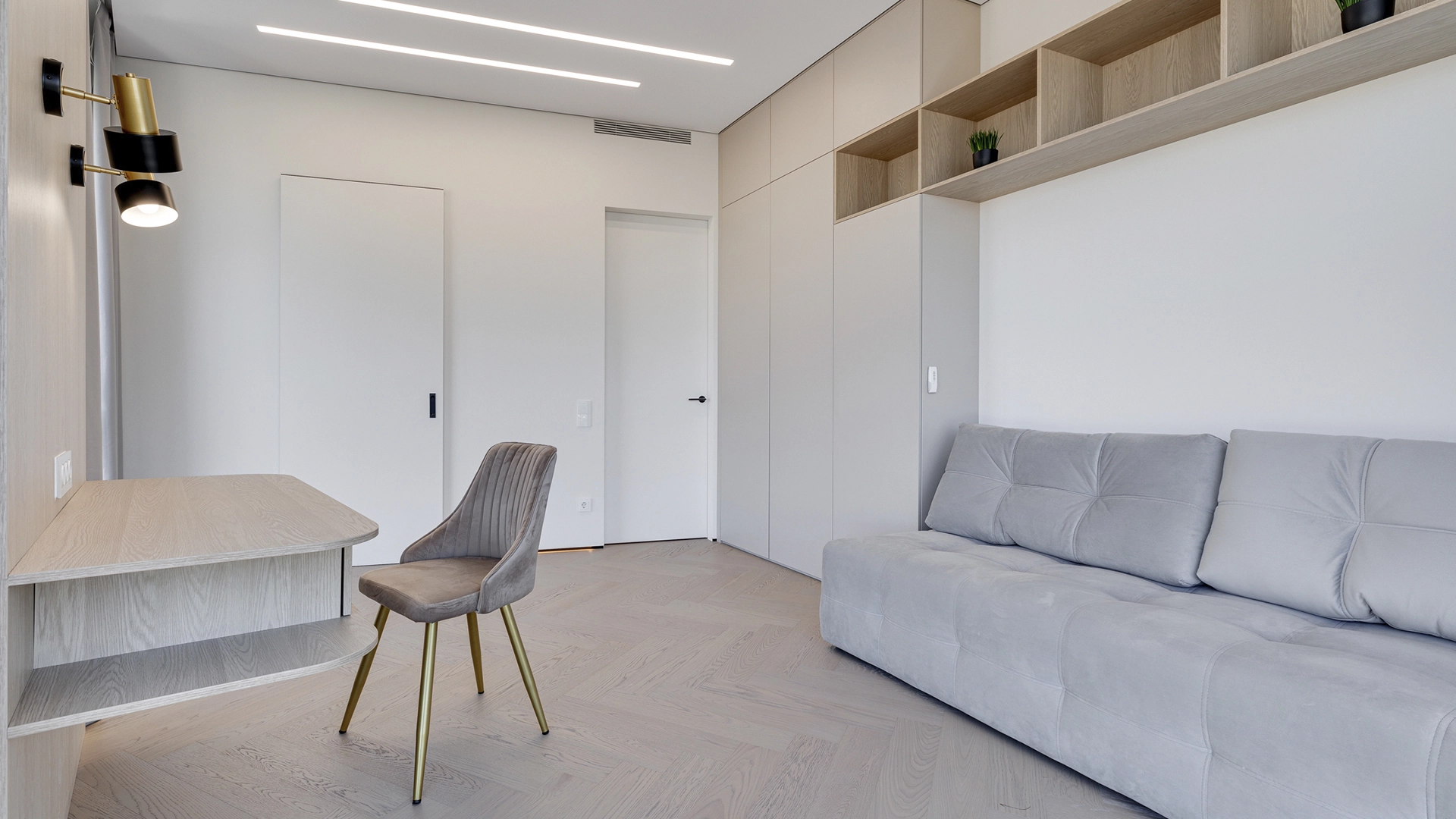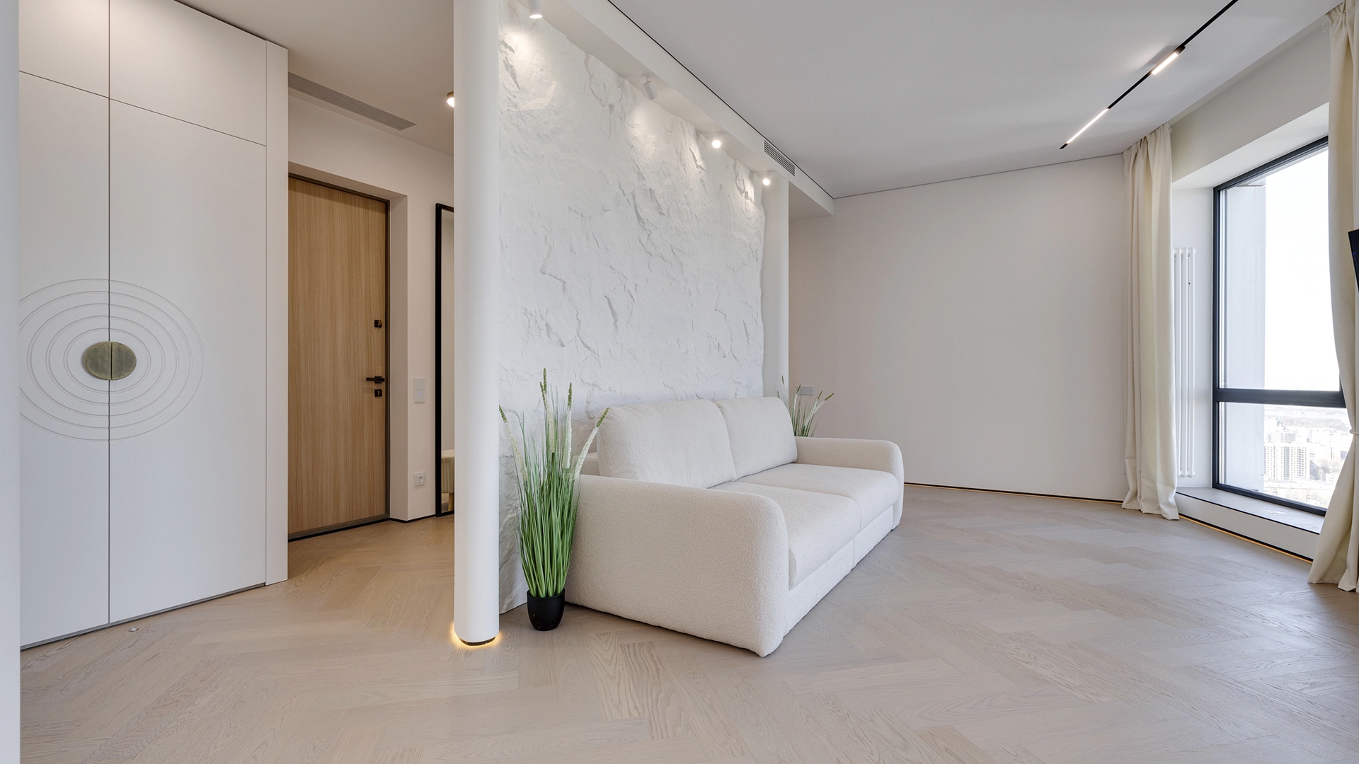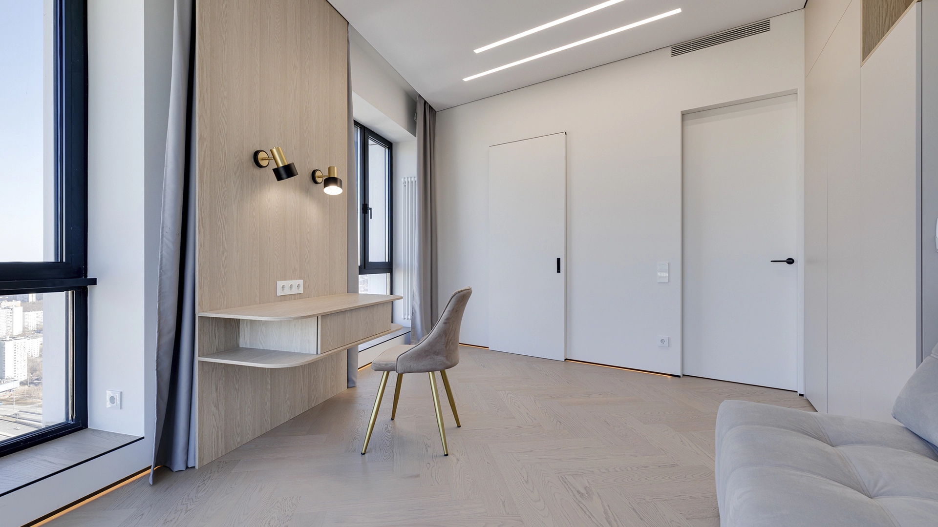 Видовая квартира с 2-мя спальнями в комплексе бизнес-класса Wellton Towers. Квартира площадью 98 м² расположена на 41 этаже. Выполнена дизайнерская отделка в современном стиле с использованием премиальных материалов. Произведены работы по комплексной шумоизоляции, установлены системы «умный дом», «теплый пол» и скрытого кондиционирования.