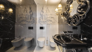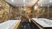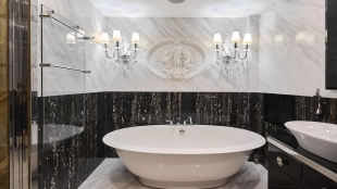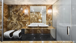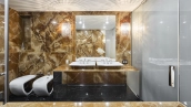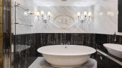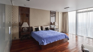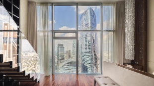 Видовые двухуровневые апартаменты с 3-мя спальнями общей площадью 253 м² в комплексе небоскрёбов премиум-класса «Город Столиц». Апартаменты с готовой премиальной дизайнерской отделкой в современном стиле расположены в башне «Москва» на 68-м этаже. В отделке использованы натуральные материалы премиум-класса, оникс, мрамор, авторские светильники, замша, массив дерева. Апартамент полностью укомплектован мебелью итальянского дома моды Fendi.