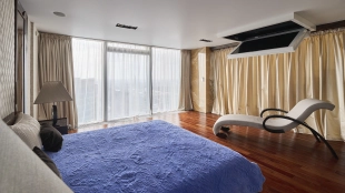 Угловое панорамное остекление наполняет пространство светом и открывает роскошные виды на Хамовники, «Лужники», Парк Победы и Москву-реку. Мастер-спальня с собственной ванной комнатой и гардеробной, кабинетом. Высота потолков 4,9 метра. Спальня с ванной комнатой и просторной гардеробной. Гостевой санузел, хозяйственная комната, просторный холл.