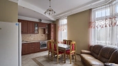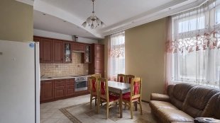 Квартира с 2-мя спальнями общей площадью 128 м² в комплексе «Квартал на Ленинском» на юго-западе Москвы. Квартира с отделкой расположена на 3-м этаже. Интерьеры декорированы многоуровневыми потолками и венчающим карнизом. Функциональная планировка включает просторную гостиную, кухню-столовую, 2 спальни, два санузла, балкон, лоджию и холл. Благодаря широкоформатному остеклению пространство наполнено естественным светом и теплом.