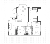 Квартиры c 2 спальнями, 122 м² в ЖК Квартал на Ленинском, 3 этаж