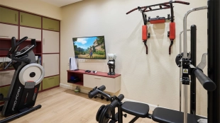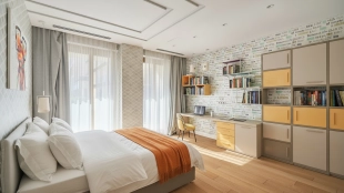 Функциональная планировка включает гостиную с выходом на патио, кухню-столовую, санузел, гардеробную и холл на первом уровне. На втором этаже спланированы мастер-спальня с собственной ванной комнатой и гардеробной, вторая спальня со своим санузлом, гостевая спальня, игровая комната, санузел, постирочная, 2 балкона и холл. В подземном паркинге предусмотрено машиноместо.