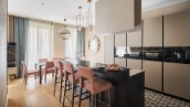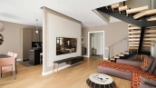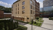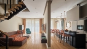 Двухуровневая квартира с 3-мя спальнями и патио в комплексе премиум-класса «Литератор» в Хамовниках. Квартира площадью 211 м² расположена на 1-м этаже в корпусе 1. Выполнена премиальная отделка в стиле минимализма, интерьеры оформлены преимущественно в светлых тонах. Благодаря панорамному остеклению «в пол» и высоким потолкам пространство наполнено светом.