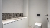 Спланированы кухня-гостиная, мастер-спальня с собственной гардеробной и санузлом, 2 спальни со своими санузлами, гостевой санузел и холл. Благодаря панорамному остеклению пространство наполнено естественным светом и теплом.
