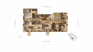 Квартира с 5-ю спальнями в комплексе премиум-класса Victory Park Residences рядом с Парком Победы. Квартира площадью 266 м² расположена на 13-м этаже в корпусе 2. Выполнена дизайнерская отделка в стиле модерн с использованием дорогостоящих премиальных материалов.