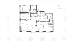 Возможная планировка: кухня-гостиная, мастер-спальня с санузлом и просторной гардеробной с окном, где можно организовать дополнительную спальню, 2 отдельных спальни, ванная комната, гостевой санузел, гардеробная, постирочная.