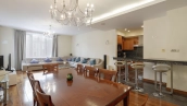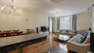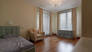 Квартира с четырьмя спальнями общей площадью 233 м² в комплексе премиум-класса «Новая Остоженка» на 2-м этаже. Выполнена дизайнерская отделка в современном стиле в светлых лаконичных тонах. Квартира укомплектована мебелью и премиальной бытовой техникой Miele. Установлена система центрального кондиционирования.