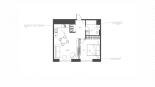 Квартиры c 1 спальней, 51 м² в ЖК Spires, 8 этаж