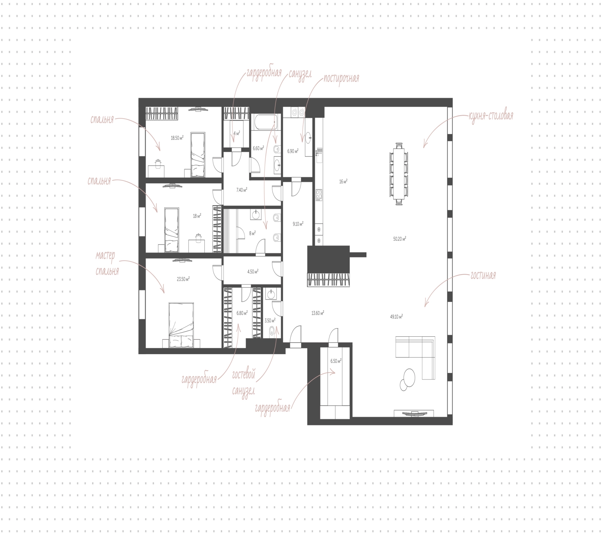 Квартира c 3 спальнями, 253 м² в ЖК Lucky, 21 этаж