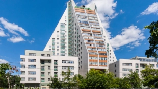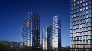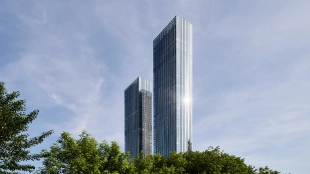 60-этажный многофункциональный центр с апартаментами и офисами. Небоскрёб выделяется ярким изумрудным остеклением и хайтек-решением. Башня овальной формы как будто встроена в прямоугольное здание под наклоном. Жилые апартаменты отделены от офисов и располагаются на верхних этажах.