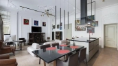 Квартира полностью меблирована и укомплектована бытовой техникой. Планировка включает просторную кухню-гостиную с обеденной зоной, мастер-спальню с собственной гардеробной и санузлом, две детские спальни, кабинет, который можно оборудовать как дополнительную спальню, гостевой санузел, постирочную, гардеробную и холл. Благодаря потолкам высотой 3,7 метра пространство наполнено светом и воздухом.