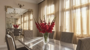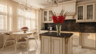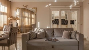 Просторная квартира с двумя спальнями общей площадью 133 м² в комплексе бизнес-класса «Донской Олимп» на шестом этаже. Выполнена авторская отделка в классическом стиле. Интерьеры украшают пилястры, венчающие карнизы, лепные детали и дизайнерские люстры. Квартира укомплектована мебелью из Италии, изготовленной под заказ. Кухня из Германии Kuchenberg оборудована техникой Smeg и двумя холодильниками Liebherr. Установлены система индивидуального кондиционирования и «теплый пол».