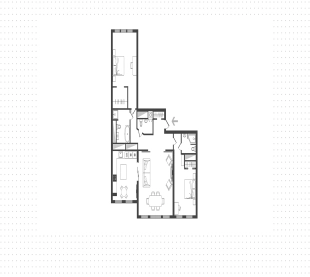 Проектом предусмотрено функциональное зонирование кухни с помощью раздвижных дверей. Планировка включает гостиную с биокамином и обеденной зоной, мастер-спальню с собственной гардеробной и ванной комнатой, вторую спальню со своим санузлом, гостевой санузел и холл. Благодаря десяти окнам и высоте потолков 3,2 метра пространство наполнено светом и воздухом, открываются виды в сторону востока и юго-запада. За дополнительную плату возможно приобрести машино-место в подземном паркинге.