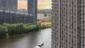 Видовая квартира с тремя спальнями площадью 113 м² в комплексе «Level Причальный» на берегу Москвы-реки. Квартира без отделки расположена на 28-м этаже в корпусе «Север», секция 2. Возможная планировка просторная кухня-гостиная, мастер-спальня с собственной ванной комнатой, две спальни, санузел, гардеробная с постирочной зоной и холл. Окна ориентированы на три стороны, открываются панорамные виды на город и на башни «Москва-Сити».