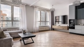 Квартира укомплектована новой мебелью, установлена угловая кухня. Бытовая техника Bosch, холодильник Liebherr, винный шкаф Meyvel Belissimo. Система кондиционирования, посудомоечная машина. Стиральная и сушильная машины Asko. Из окон открываются панорамные виды на город в сторону реки.