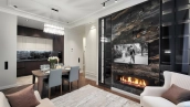 Функциональная планировка включает кухню-гостиную с обеденной зоной и биокамином, мастер-спальню с собственной ванной комнатой и гардеробной, две спальни, санузел с душевой кабиной и холл. Дополнительно предусмотрено много мест для хранения вещей. Широкоформатные окна ориентированы на две стороны света, открывают виды на парк «Событие» и благоустроенную территорию комплекса.